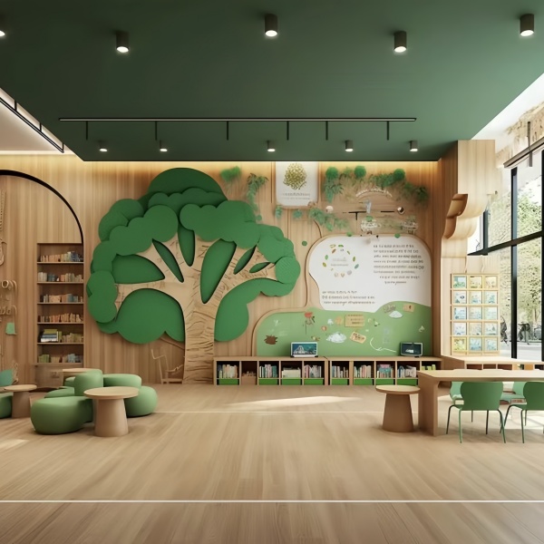 The furniture in a biophilic classroom design is not only functional but also plays an important role in visual and mental stimulation. Furniture that incorporates plant-inspired designs—such as desks with botanical shapes, shelves that resemble trees, or chairs featuring leafy motifs—adds an extra layer of creativity to the classroom.