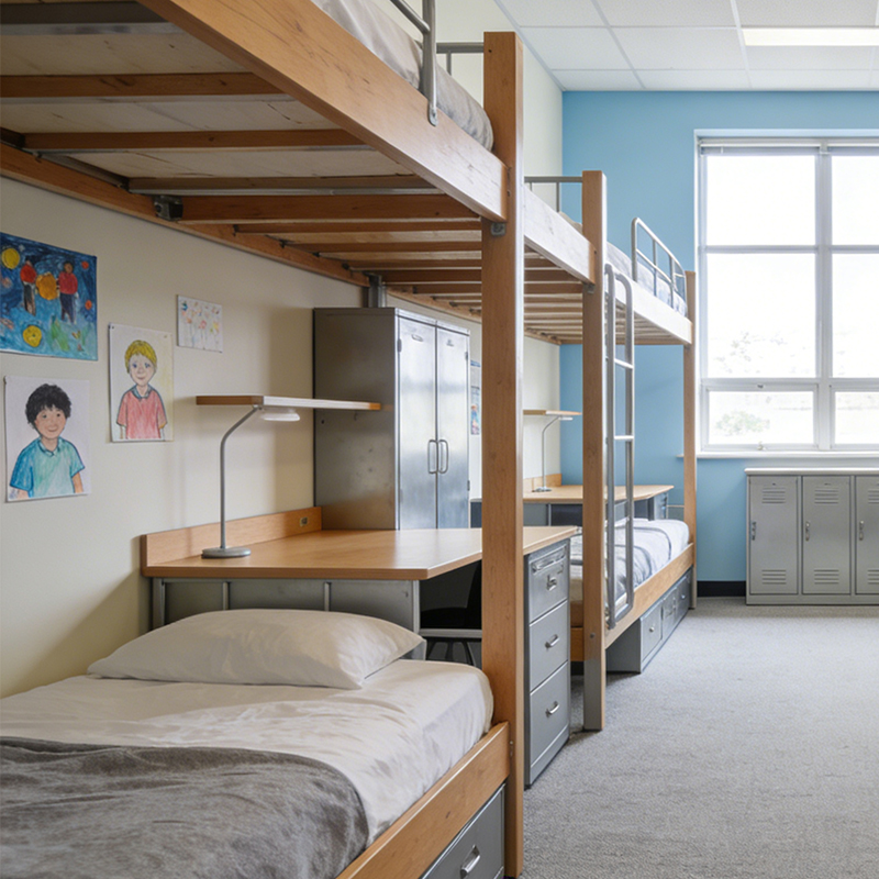 Beyond schools, our durable Bunk Bed systems are perfect for corporate or government housing. The rugged construction of this Dormitory Furniture ensures it can withstand the high turnover of professional dormitory environments while remaining easy to maintain.