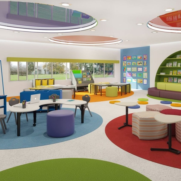 Limit primary furniture surfaces to one base color and one or two accent colors. Excessive variation can distract students and complicate future maintenance.