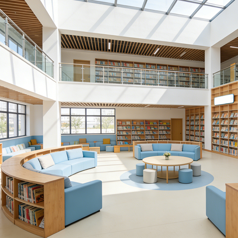 Efficiency meets comfort in our Library reading furniture. Each Library Bookshelf unit can be customized to include built-in upholstered seating or integrated digital research stations. This holistic approach to School library furniture design maximizes floor space ROI by 25% compared to traditional detached shelving. It’s an essential component for any multi-functional library design looking to provide a "one-stop" learning experience for students within the library walls.