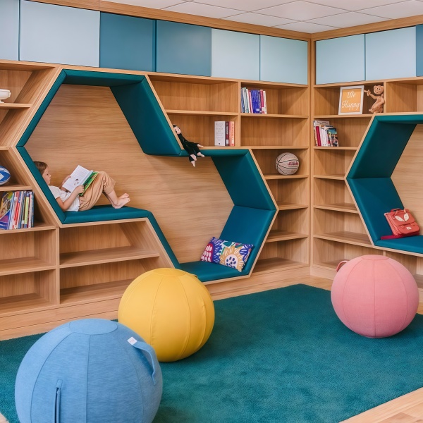 Comfy Lounge Areas: Soft seating, such as bean bags or lounge chairs, provide a relaxing space for reading, small group work, or individual study.
